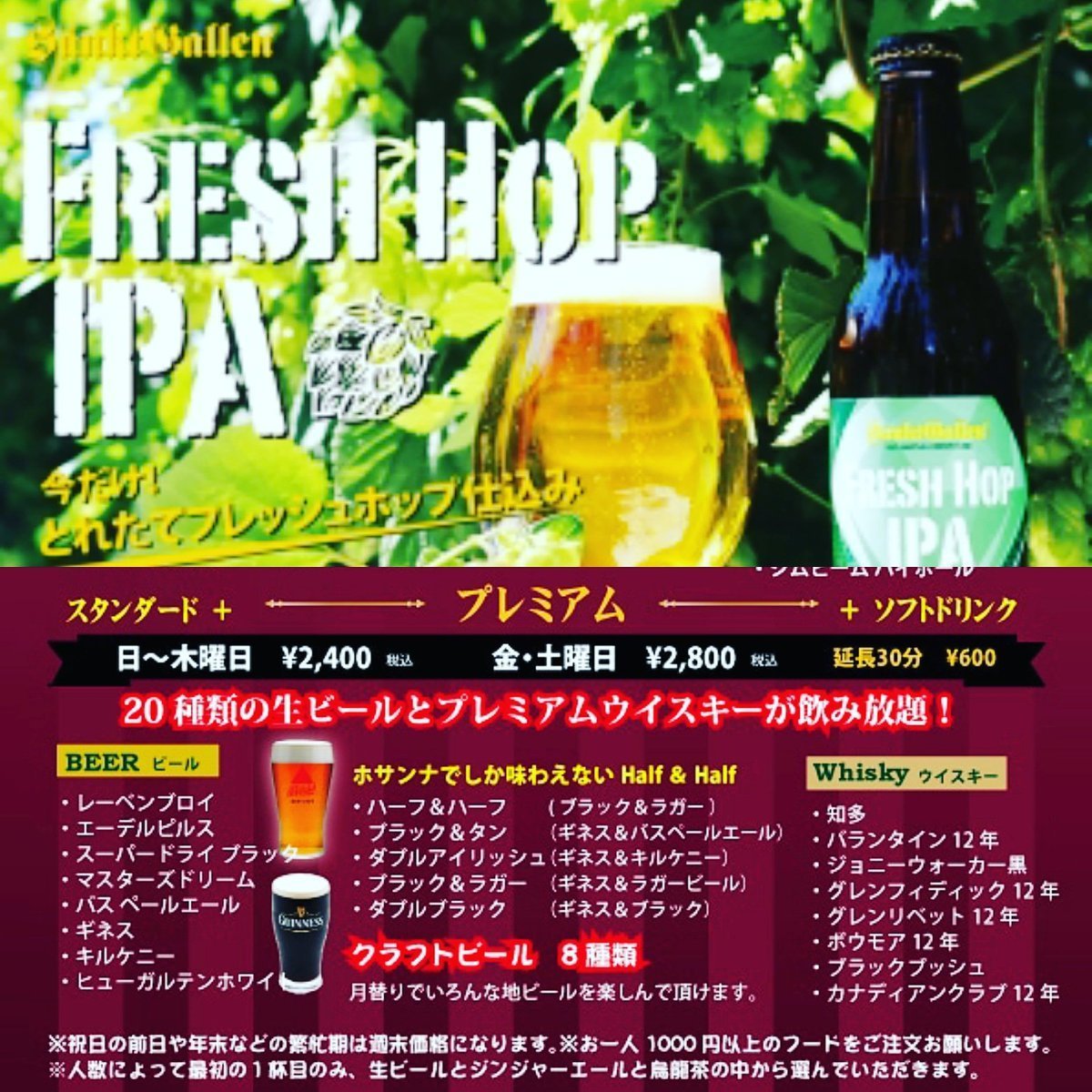 こんばんは、ホサンナのしらりんです。今日からサンクトガーレンのFRESH HOP IPAが入荷しました。生ホップを使用しているので香りが段違い!!ぜひ、楽しみに来てくださいね☆