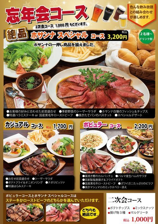 ホサンナの『忘年会プラン』が出来ました!